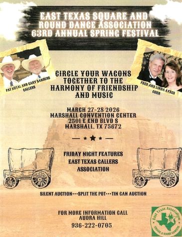 Bossier City, LA 5400 Benton Rd. Southern Swingers has workshops Tuesdays from 7:00-9:30 PM. All PLUS last 30 minutes. Club Caller: Joey Duhamel. Saturday dance each month on 2nd Saturday 7:00 - 9:30 p.m. 2 1/2 hours of Square Dancing. For Round dance schedule please see Red River Rounders below. Visit our Facebook page, Southern Swingers Square Dance, email sssquaredance@gmail.com, or call Valerie Watts, President 318-469-4311.